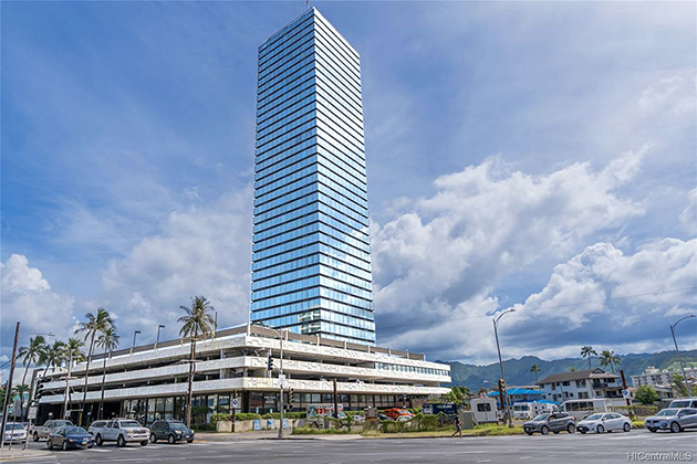 ワイキキトレードセンター斜め前。クヒオ通りに立つ39階建てのコンドミニアムのロイヤルクヒオはロケーション抜群!