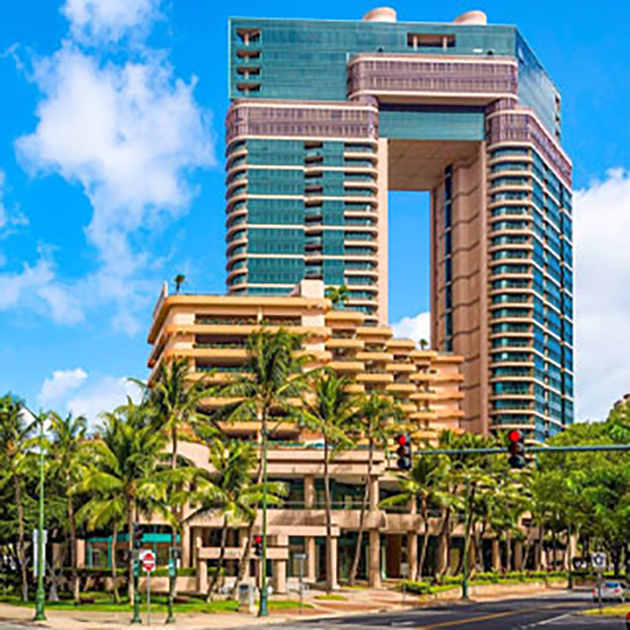 ワイキキの玄関である北西に位置し、ツインタワーの外観が特徴的なワイキキランドマーク。